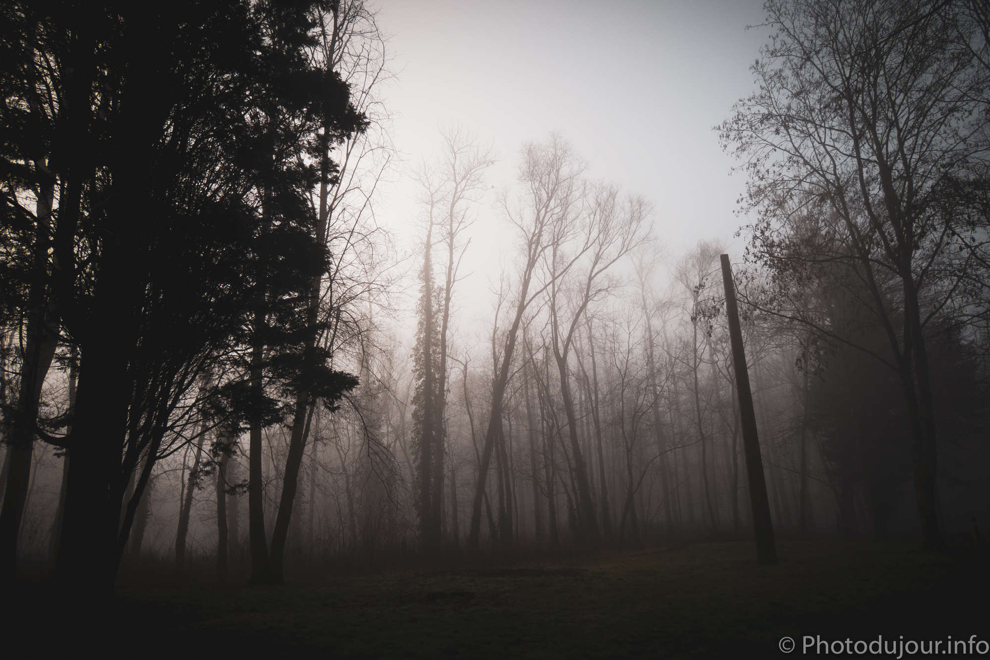 Parc de la Butte à Leers sous le brouillard
