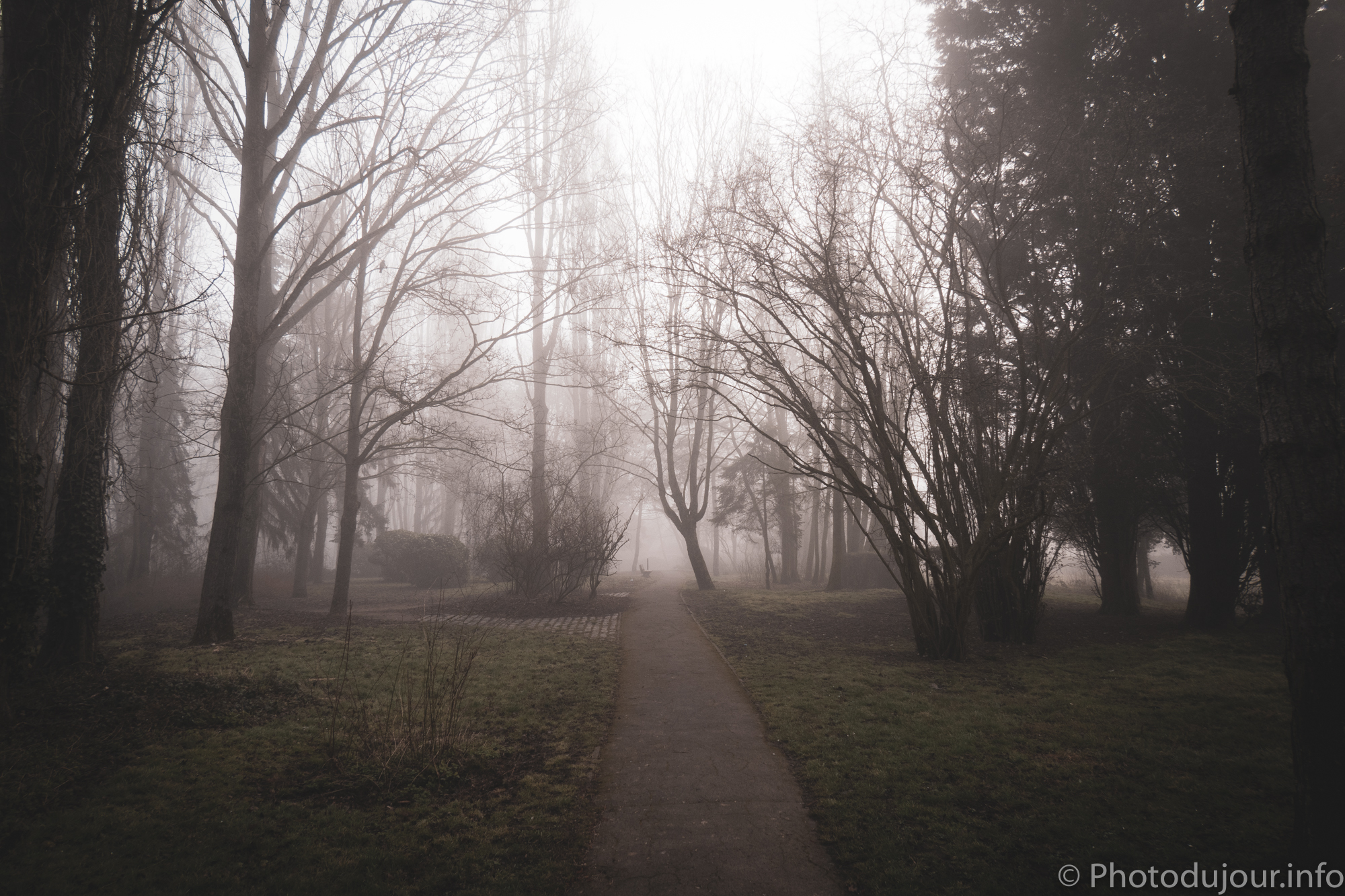 Parc de la Butte à Leers sous le brouillard